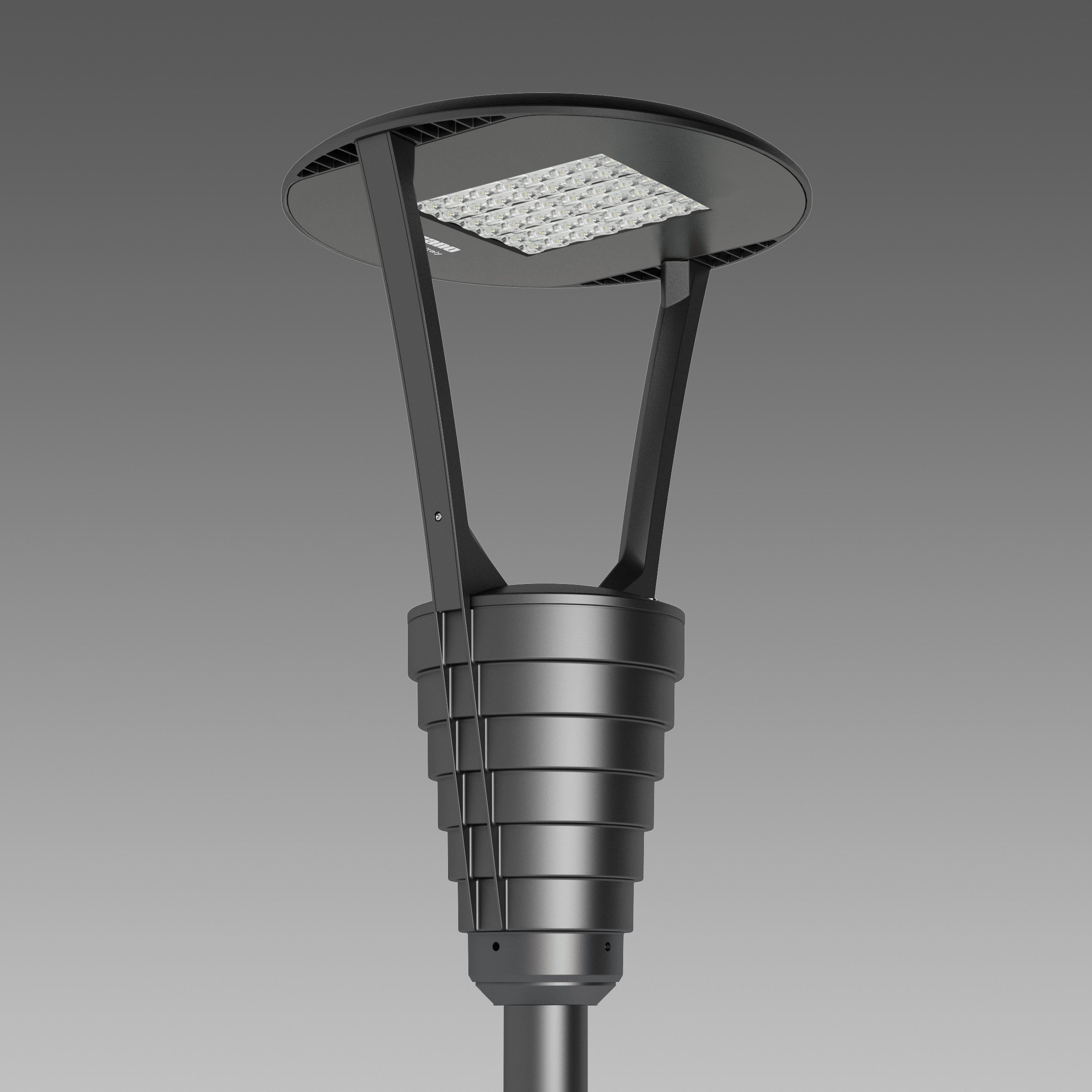 La lanterne d'éclairage Garda est parfaite pour l'éclairage urbain avec son corps et bras en aluminium moulé sous pression, avec une très petite surface d'exposition au vent.