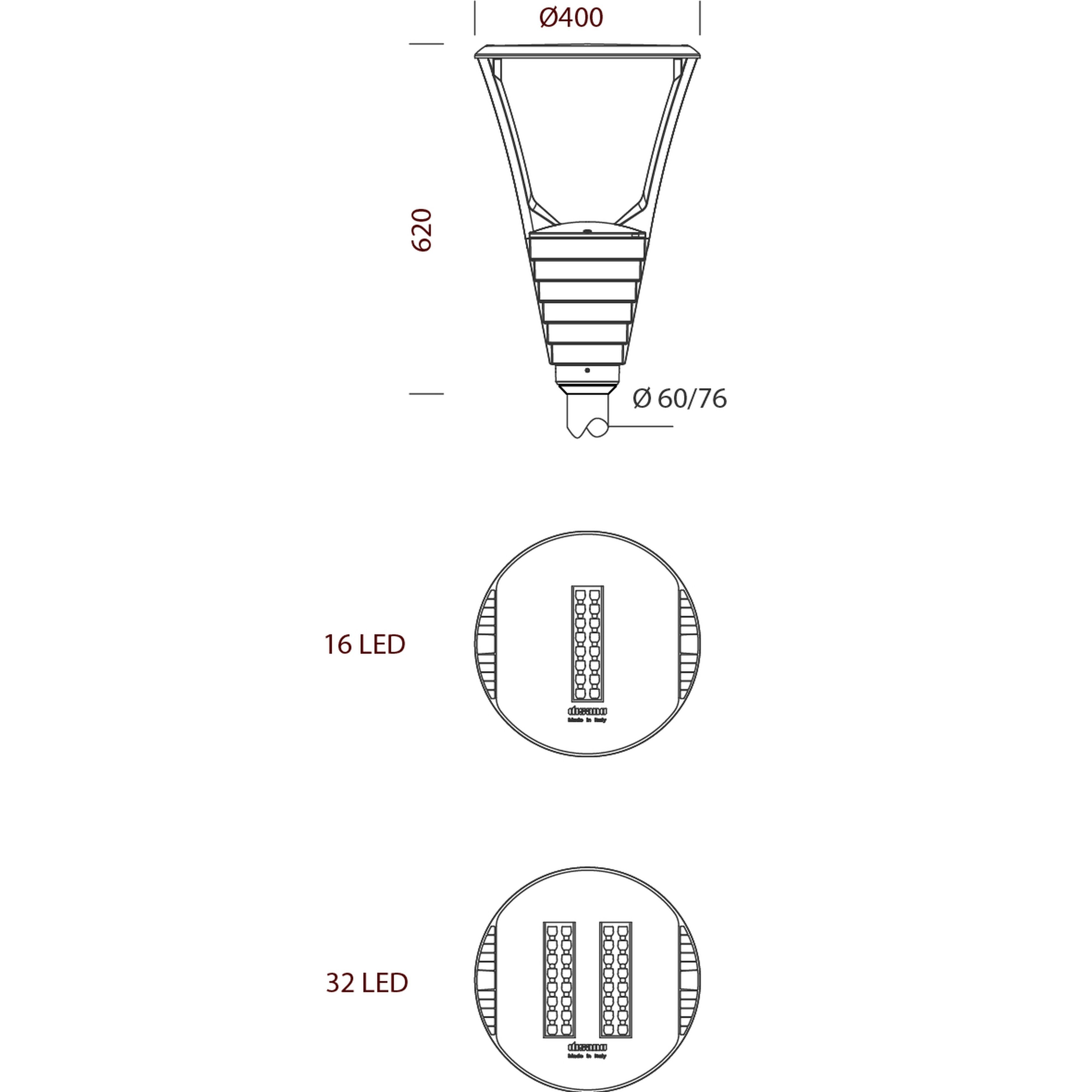 La lanterne d'éclairage Garda est parfaite pour l'éclairage urbain avec son corps et bras en aluminium moulé sous pression, avec une très petite surface d'exposition au vent.