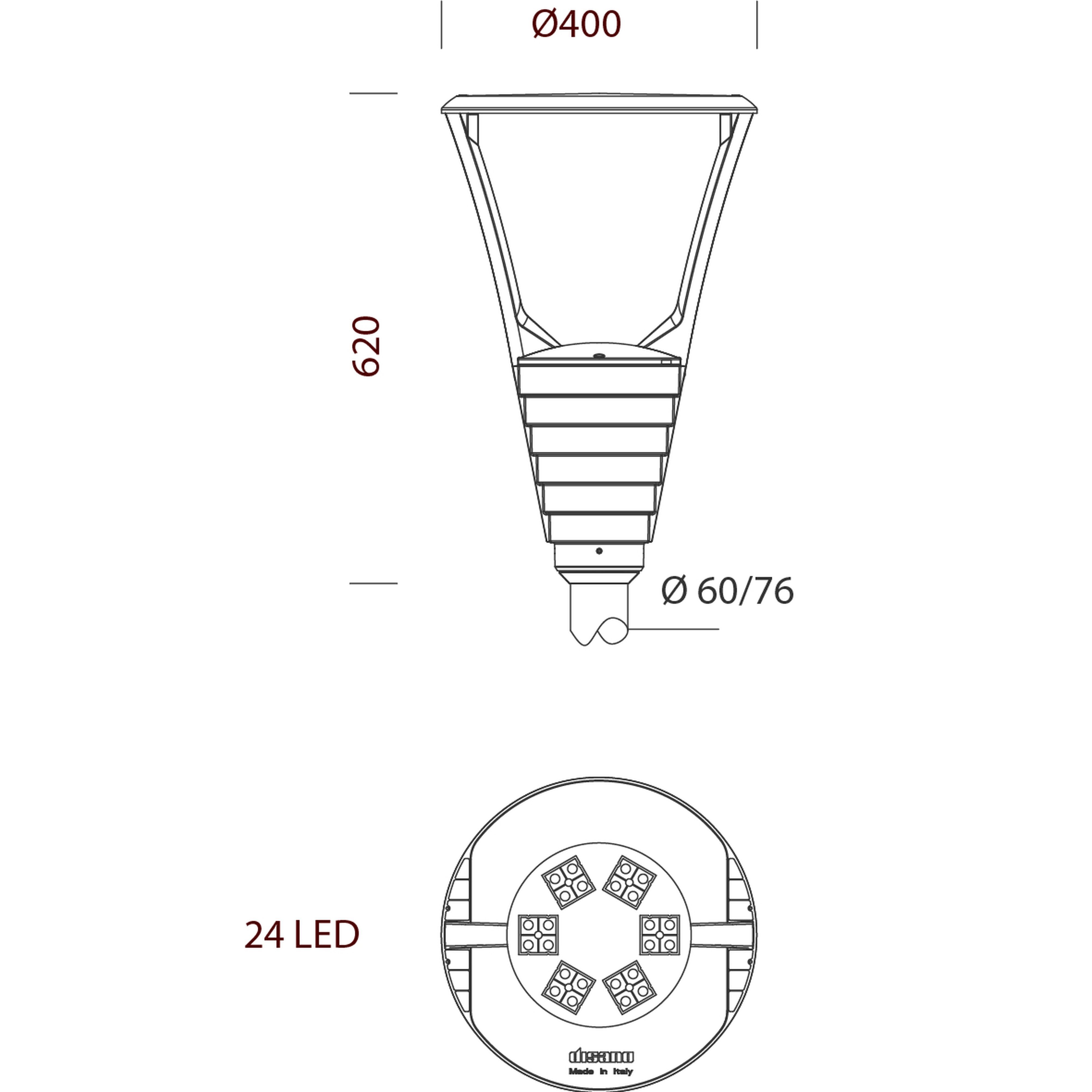 La lanterne d'éclairage Garda est parfaite pour l'éclairage urbain avec son corps et bras en aluminium moulé sous pression, avec une très petite surface d'exposition au vent.