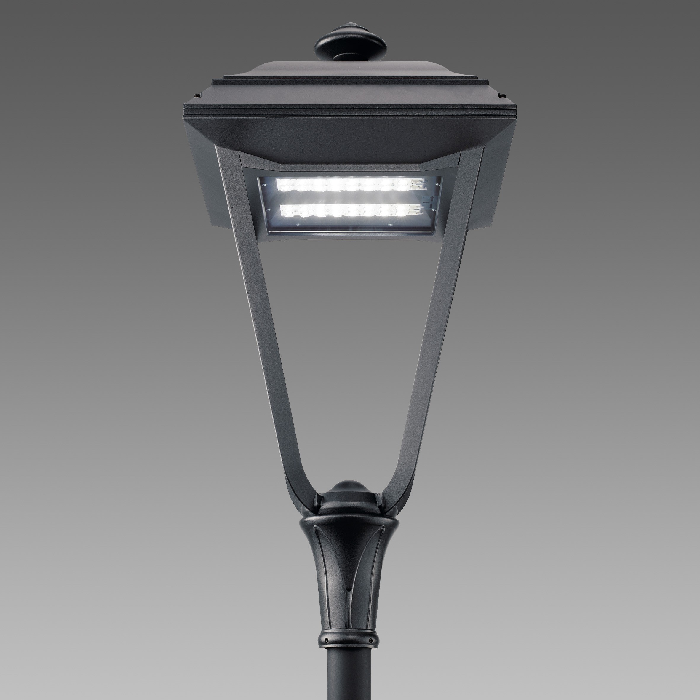 L’hsistoire du design abrite des formes classiques auxquelles il est difficile de renoncer.Le réverbère typique avec la lanterne de verre fait partie des images hsistoriques de toutes les villes, de nos souvenirs personnels. Il est une composante de la ville.La possibilité d’appliquer les nouvelles technologies à l’éclairage urbain, afin d’optimiser la qualité de la lumière tout en utilisant moins d'énergie, peut se conjuguer avec le souhsait de ne pas perdre une once de l’éternel chsarme des anciens réverbères.Lucerna n’est pas qu’une simple réinterprétation du lampadaire classique, mais bel et bien un nouveau projet qui propose une forme traditionnelle repensée dans les moindres détails.La lanterne est disponible en versions - ronde – avec des candélabres redessinés dans le même style, affichsant également des fantaisies particulières, comme des motifs floraux à la base ou sur la console.Corps, couvercle, branches et fixation candélabre en aluminium moulé sous pression.Écran : Verre trempé, épaisseur 5 mm, résistant au choc thermique et au choc mécanique.Peinture : cycle de peinture liquide standard, par immersion, se compose de plusieurs phases : une première phase de prétraitement superficiel du métal, une couche de peinture cataphorèse résistante à la corrosion et au brouillard salin, une couche finale de peinture liquide acrylique bi-composante stabilisée aux rayons UV.Equipment : Vis imperdables en acier inox. Articulation escamotable en acier ép. 25/10 avec pattes de fixation pour empêcher la chute accidentelle du couvercle. Sectionneur de série.Dotations : avec connecteur pour le raccordement secteur et des LED. Contrôle automatique de la température à l’intérieur du dispositif avec réarmement automatiqueAvec dispositif électronique conçu pour la protection du module LED.Avec filtre anticondensation.Économie : la possibilité de choisir le courant de pilotage des LED permet de disposer toujours de la puissance adaptée à une condition conceptuelle spécifique, en simplifiant aussi l’approche aux futurs problèmes d’entretien et d’actualisation. Le choix d’un courant plus faible augmentera l’efficacité, en améliorant donc l’économie d’énergie, tandis qu’un courant plus fort permettra d’obtenir davantage de lumière et de réduire le nombre des appareils.