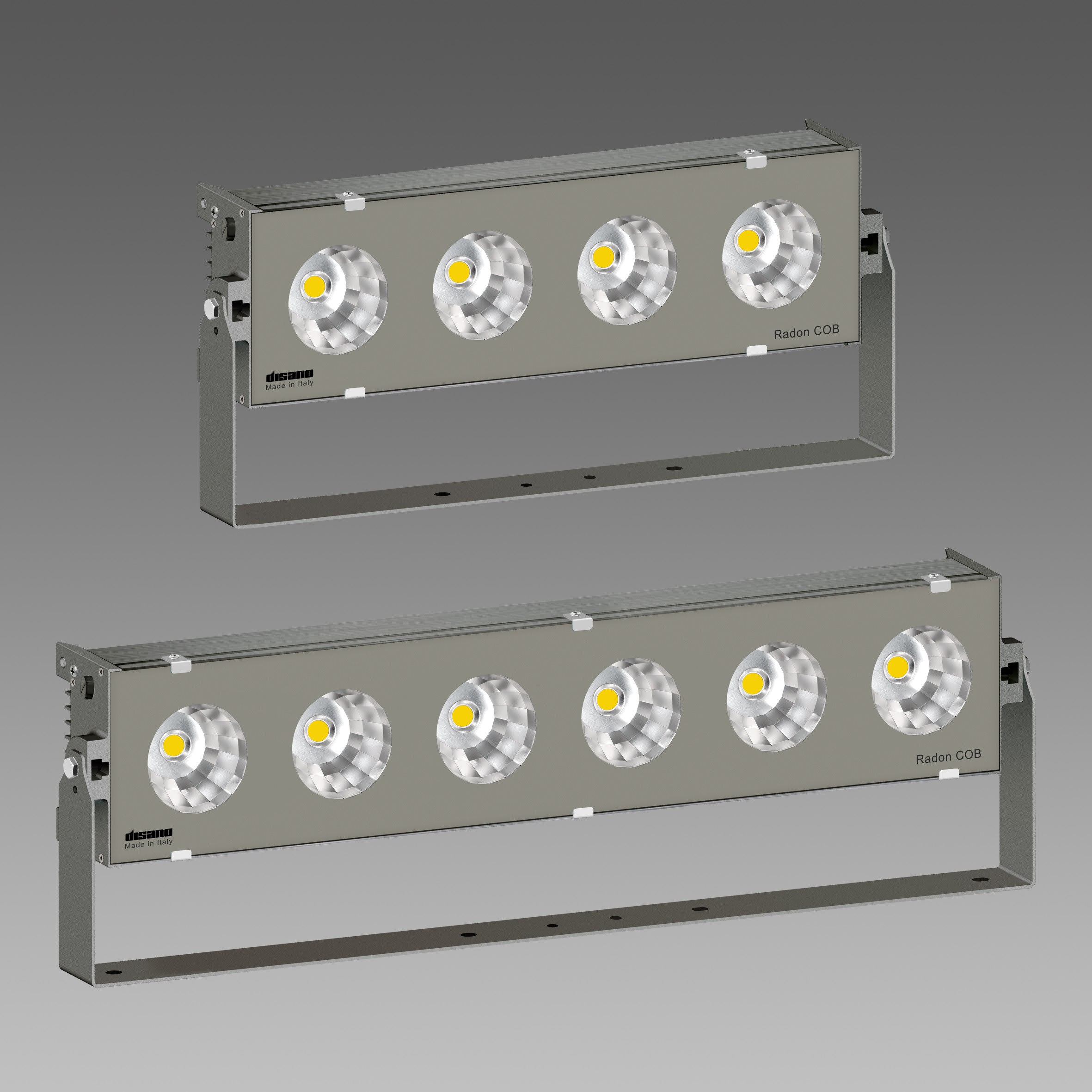 La famille des projecteurs Radon LED comprend des versions avec optiques à fasceau intensif, symétrique et asymétrique.Déclinaion en 1 module, 2 modules ou 3 modules.Corps : aluminium extrudé avec embouts en aluminium moulé sous pression.Reflecteur : en aluminium satiné, de haute rendement et anti-reflets.Diffuseur : verre trempé épaisseur 4 mm résistant aux chocs thermiques et mécaniques (essais NF EN 12150-1/2001).Peinture : le cycle de peinture poudre standard se compose d'une phase de prétraitement superficiel du métal et d'une passe de peinture poudre polyester, résistante à la corrosion et au brouillard salin, stabilisée aux rayons UV.Equipement : étrier en acier galvanisé peint; joint en caoutchouc siliconé ; visseries externes en acier inox ; vanne de circulation d'air. Connecteur étanche pour une installation rapide sans besoin d'ouvrir l'appareil.Alimentation: alimentation 220-240V 50/60Hz, avec driver IP66 sur luminaire. Protection contre les impulsions conforme à la norme EN 61547 pour la platine Led et son driver.Deux modes de fonctionnement : - Mode différentiel : entre les conducteurs actifs, entre phase et neutre.- Mode commun : entre les conducteurs actifs, phase/neutre et la terre ou le corps du luminaire si celui-ci a une isolation classe II et est installé sur mât métallique. Sur demande : Protection jusqu'à 10kV. Differents systèmes de gestion de l'éclairage au point lumineux ou centralisés avec capteurs de présence/luminosité.Peinture conforme à la norme NF EN ISO 9227 - Essais de corrosion en atmosphères artificielles, pour atmosphères agressives.