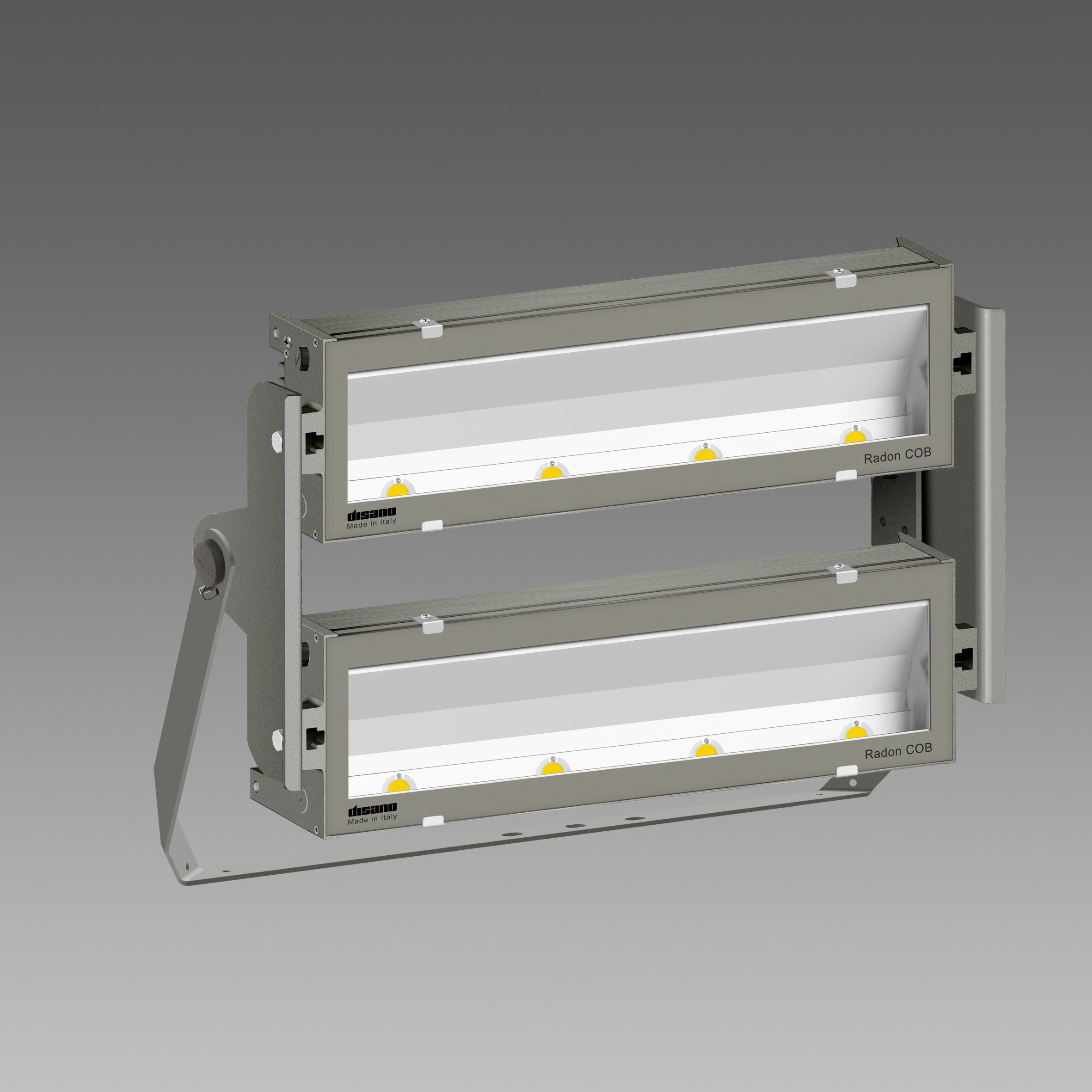Projecteur Radon asymétrique 2 modules en version LED COB de 82500 lumens de 4000K avec faisceau 50 degrés et CRI 70.
