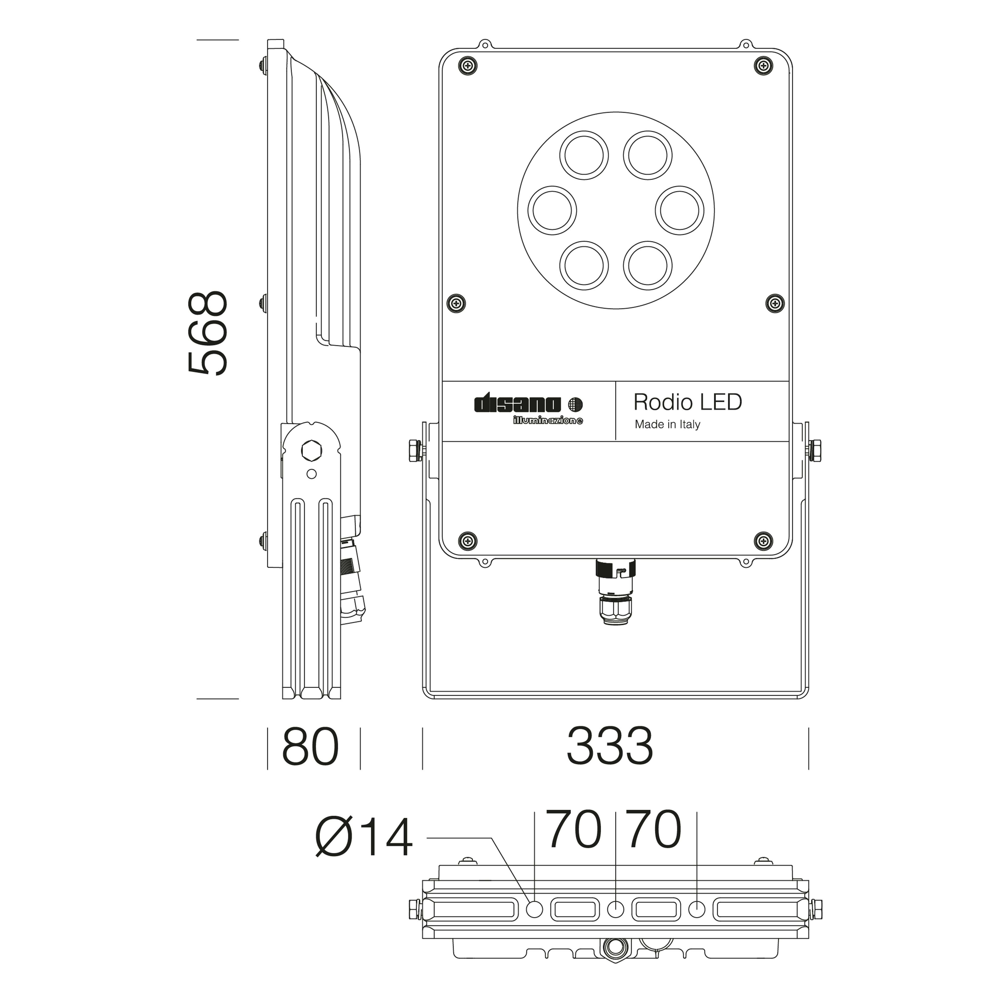 La gamme Rodio LED est idéale pour l'utilisation extérieure et intérieure.Un classique des projecteurs à LED, la gamme vous propose une version LED avec lentille ou classique, une version HT qui résiste à des hautes températures, et une version LED avec minuit virtuel qui permet de faire des économies d'énergie durant les heures nocturnes, possibilité de le paramétrer.La gamme dispose d'un effet de gammes et d'optiques impressionnants, plusieurs technologies de leds, plusieurs optiques symétriques ou asymétriques.Cette gamme permet de s'intégrer à tous les abords de bâtiments, de projets sportifs et bien d'autres projets outdoors. Possibilité de 2200K de 3000k au décret et de 4000K pour le sportif Indoor.Il est également possible de le fixer sur un mât (acc. 333 / acc. 334).Corps : en aluminium moulé sous pression, avec ailettes de refroidissement.Réflecteur : en PMMA à haute résistance aux températures et aux rayons U.V.Diffuseur : verre trempé d’une épaisseur de 5 mm, résistant aux chocs thermiques et mécaniques.Peinture : le cycle de peinture poudre standard se compose d’une phase de prétraitement superficiel du métal et d’une passe de peinture poudre polyester en couche simple, résistante à la corrosion et au brouillard salin, stabilisée aux rayons UV.Équipement : connecteur externe pour une installation rapide. Joint en caoutchouc siliconé ; visseries externes en acier inox ; vanne de circulation d'air. Protection contre les impulsions conforme à la norme EN 61547 pour la platine Led et son driver.Corps : en aluminium moulé sous pression, avec ailettes de refroidissement.Réflecteur : en PMMA à haute résistance aux températures et aux rayons U.V.Diffuseur : verre trempé d’une épaisseur de 5 mm, résistant aux chocs thermiques et mécaniques.Peinture : le cycle de peinture poudre standard se compose d’une phase de prétraitement superficiel du métal et d’une passe de peinture poudre polyester en couche simple, résistante à la corrosion et au brouillard salin, stabilisée aux rayons UV.Équipement : connecteur externe pour une installation rapide. Joint en caoutchouc siliconé ; visseries externes en acier inox ; vanne de circulation d'air. Protection contre les impulsions conforme à la norme EN 61547 pour la platine Led et son driver.
