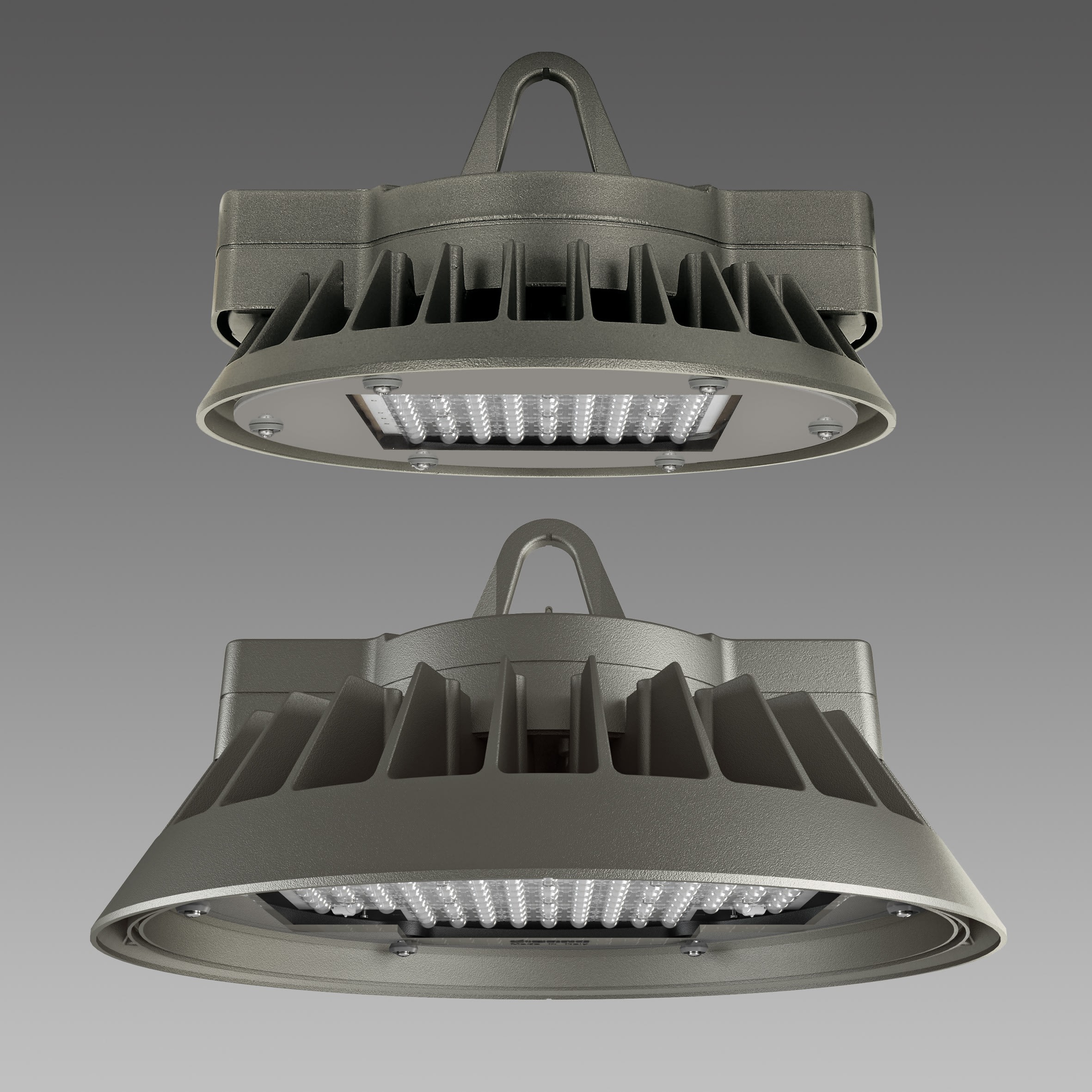 Réflecteur Industriel Saturno de 64 Watt 4000K 4kV 8427 lumens 6,7kg Facteur de puissance ≥0,95 Maintien flux lumineux : L80B10 80000 heures et risque photobiologique : groupe 0 Température fonctionnement : 20°C à +45°C IP66 IK08