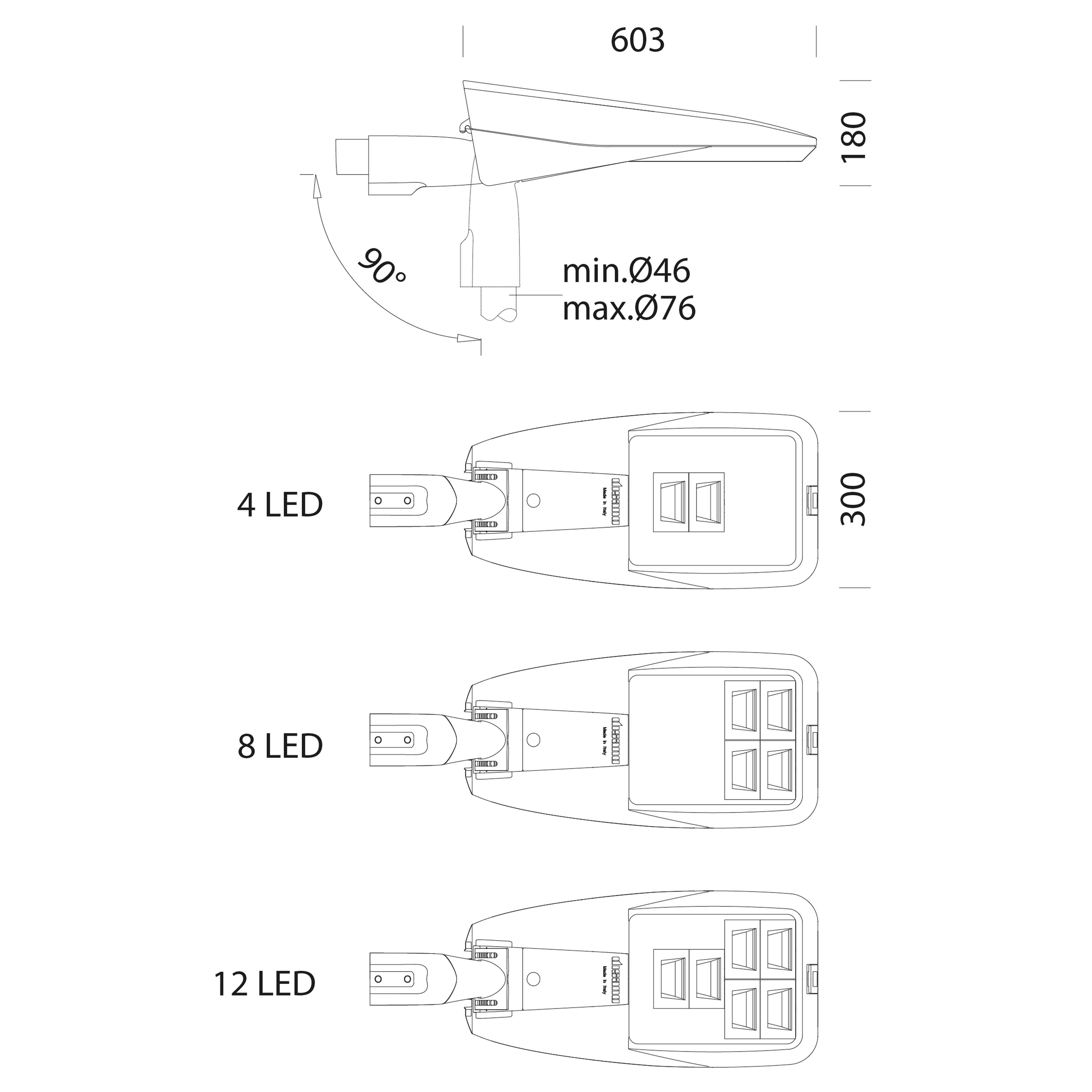 Lanterne d'éclairage public, la Sella fait partie des premières générations LED et elle est régulièrement upgradée en technologie.Il existe différentes versions de SellaLes tailles vont de 600mm à 960mm et les puissances de 18w à 255w.Les flux vont de 2722lms à 30000lms.La Sella s'adapte à toutes les hauteurs.Sa technologie est à la pointe et ses systèmes divers de gestions sont grands.Corps et couvercle : aluminium moulé sous pression, profil aérodynamique avec petite surface d'exposition au vent. Ailettes de refroidissement incorporées dans le capot. Optique : aluminium avec revêtement PVD argent pur à 99, 99%.Raccord mât : en aluminium moulé sous pression. Parfait pour les mâts de 42-76 mm de diamètre. Orientable de 0° à 20° pour fixation sur la crosse, et de 0° à 20° pour fixation en sommet de mât. Inclinaison par 5 degrés. Diffuseur : verre trempé ultra clair épaisseur 4 mm résistant aux chocs thermiques et mécaniques (UNI NF EN 12150-1/ 2001).Peinture : le cycle de peinture poudre standard se compose d'une phase de prétraitement superficiel du métal et d'une passe de peinture poudre polyester en couche simple, résistante à la corrosion et au brouillard salin, stabilisée aux rayons UV.Le luminaire Sella résiste à 2 000 h d'exposition au brouillard salin conformément à la norme ASTM B 117, et à 2 000 h d'exposition au rayonnement UV/à la condensation d'eau conformément à la norme ASTM G 154.Équipement : sectionneur de série classe II qui coupe l'alimentation électronique à l'ouverture du capot. Protection contre les impulsions conforme à la norme EN 61547 pour la platine Led et son driver. Connecteur externe pour une installation rapide.