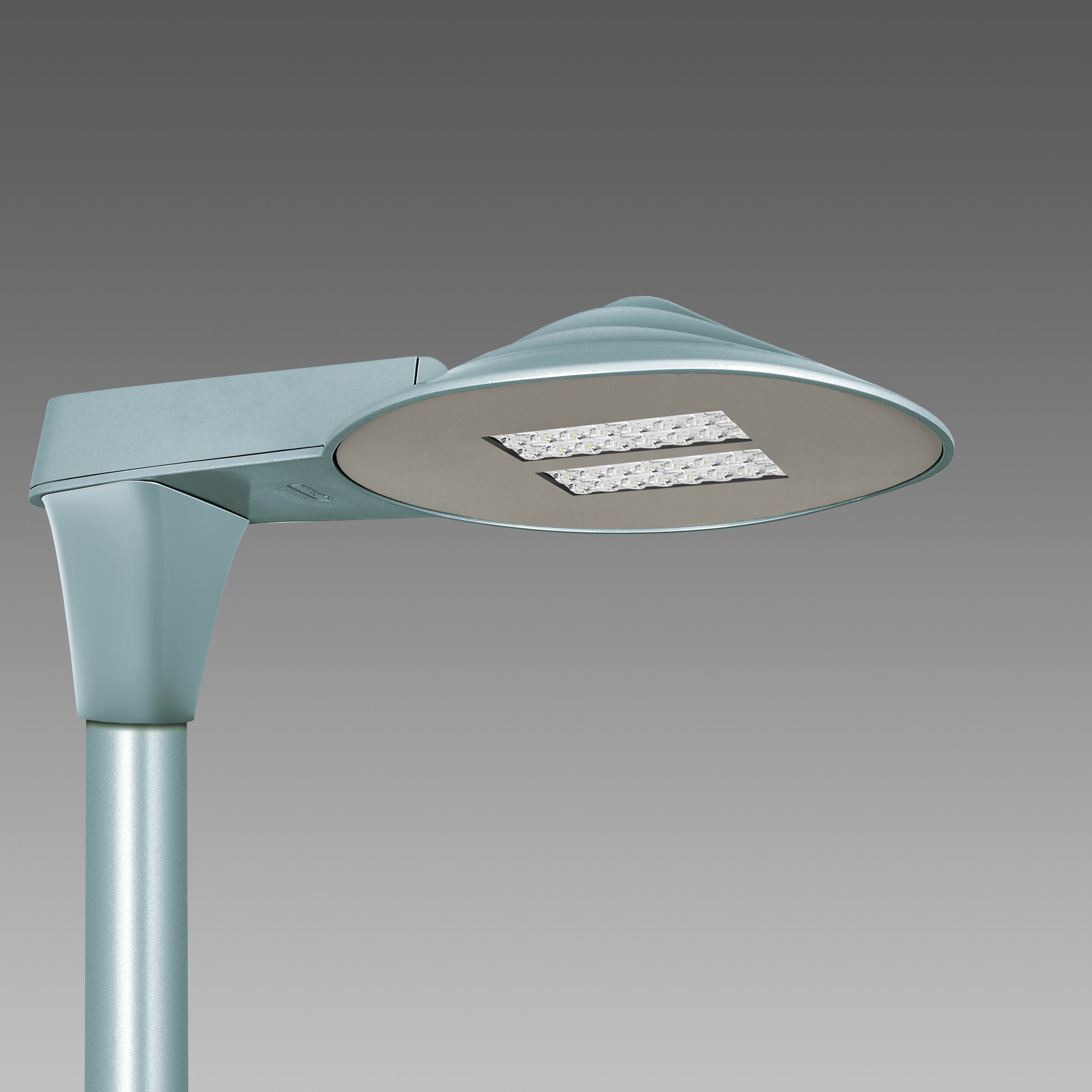 La gamme Volo se décline en différents modèles pour l'éclairage routier et pour l'éclairage des pistes cyclables. Coloris disponibles : perlé, graphite, argent sablé.