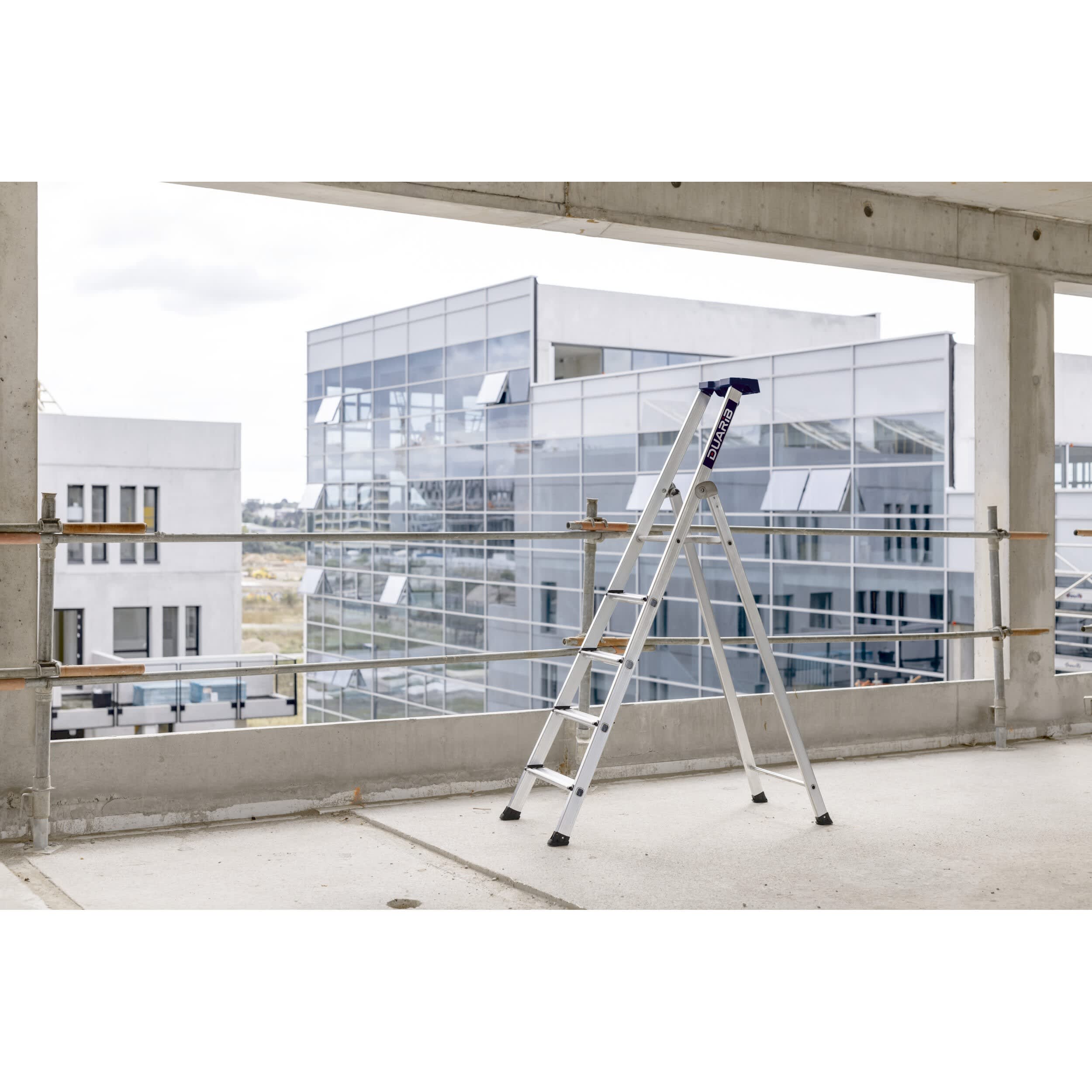 Hauteur d'accès jusqu'à 3.80 mTablette porte-outils avec crochet porte-seau pour fût jusqu'à 30 kgPlate-forme antidérapante en fonte d’aluminium (250 x 250 mm).Assemblé par sertissageFabrication françaiseGarantie 5 ansEscabeau en aluminiumHauteur d'accès jusqu'à 3.80 mDisponible de 3 à 8 marchesNorme EN 131Labellisé NFArticulations en fonte d’aluminium pour une résistance optimale aux conditions exigeantesProfil renforcé de 54 mm sur le plan de montéeGarde-corps hauteur 600 mmCharge maxi : 150 KgFabrication française