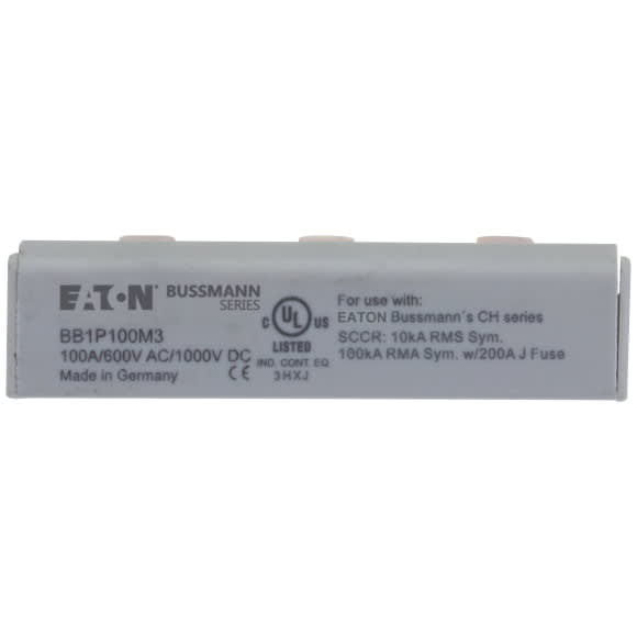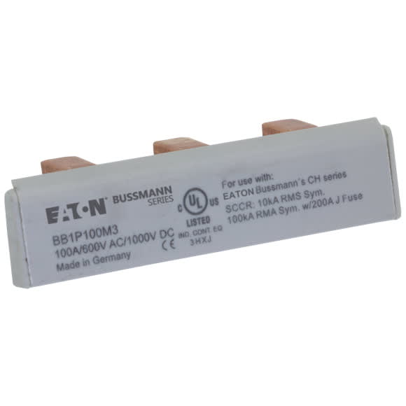 Eaton Industries France SAS - Barre, Basse tension, 100 A, AC 600 V, DC 1000 V, 15 x 16 x 52 mm, 3P, UL - BB1P100M3