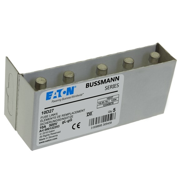 Eaton Industries France SAS - Cartouche fusible, Basse tension, 10 A, AC 500 V, D2, gL/gG, IEC, lent - 10D27