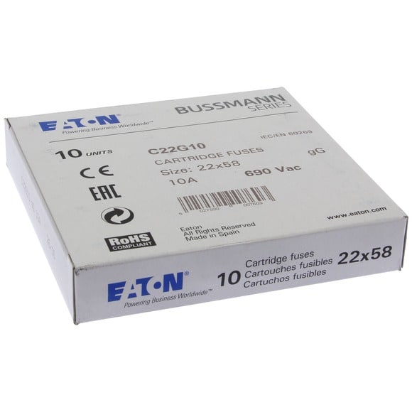 Eaton Industries France SAS - Cartouche fusible, Basse tension, 10 A, AC 690 V, 22 x 58 mm, gL/gG, IEC - C22G10