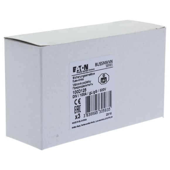 Eaton Industries France SAS - Cartouche fusible, Basse tension, 100 A, AC 500 V, D4, gL/gG, IEC, lent - 100D125