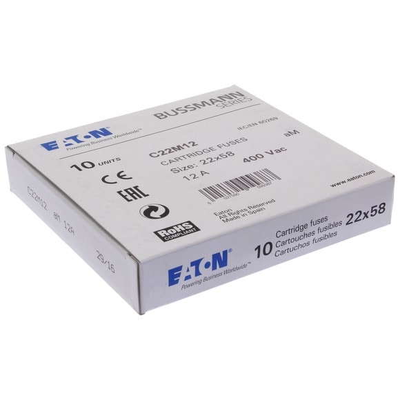 Eaton Industries France SAS - Cartouche fusible, Basse tension, 12 A, AC 690 V, 22 x 58 mm, aM, IEC - C22M12