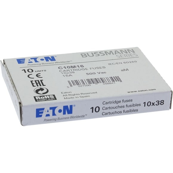 Eaton Industries France SAS - Cartouche fusible, Basse tension, 16 A, AC 500 V, 10 x 38 mm, aM, IEC - C10M16