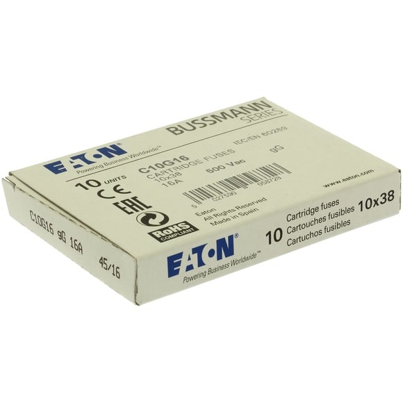 Eaton Industries France SAS - Cartouche fusible, Basse tension, 16 A, AC 500 V, 10 x 38 mm, gL/gG, IEC - C10G16