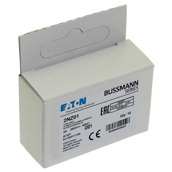 Eaton Industries France SAS - Cartouche fusible, Basse tension, 2 A, AC 400 V, D01, gL/gG, IEC, lent - 2NZ01