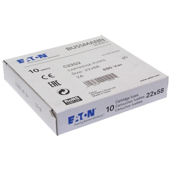 Eaton Industries France SAS - Cartouche fusible, Basse tension, 2 A, AC 690 V, 22 x 58 mm, gL/gG, IEC - C22G2