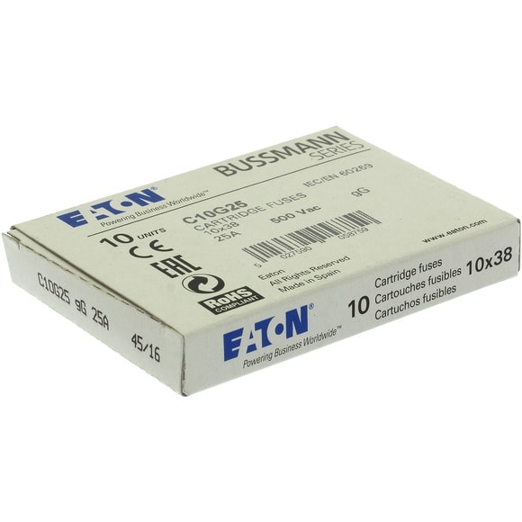 Eaton Industries France SAS - Cartouche fusible, Basse tension, 25 A, AC 500 V, 10 x 38 mm, gL/gG, IEC - C10G25