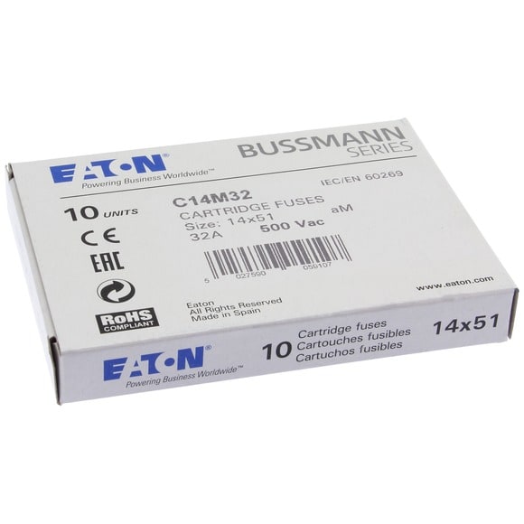 Eaton Industries France SAS - Cartouche fusible, Basse tension, 32 A, AC 500 V, 14 x 51 mm, aM, IEC - C14M32
