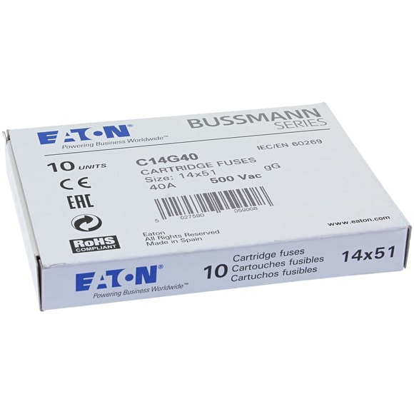 Eaton Industries France SAS - Cartouche fusible, Basse tension, 40 A, AC 500 V, 14 x 51 mm, gL/gG, IEC - C14G40