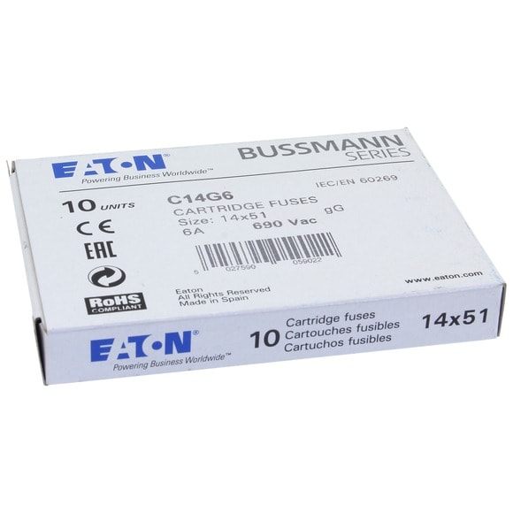 Eaton Industries France SAS - Cartouche fusible, Basse tension, 6 A, AC 690 V, 14 x 51 mm, gL/gG, IEC - C14G6