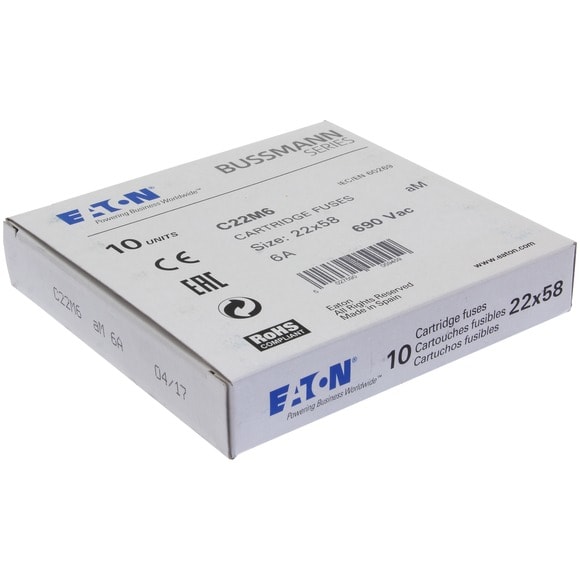 Eaton Industries France SAS - Cartouche fusible, Basse tension, 6 A, AC 690 V, 22 x 58 mm, aM, IEC - C22M6