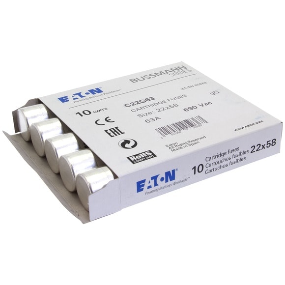 Eaton Industries France SAS - Cartouche fusible, Basse tension, 63 A, AC 690 V, 22 x 58 mm, gL/gG, IEC - C22G63
