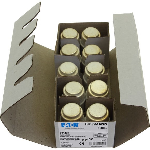 Eaton Industries France SAS - Cartouche fusible, Basse tension, 80 A, AC 400 V, D03, gL/gG, IEC, lent - 80NZ03