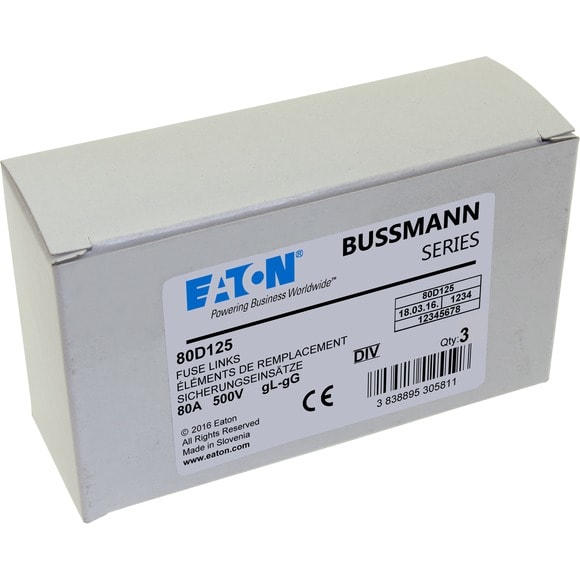Eaton Industries France SAS - Cartouche fusible, Basse tension, 80 A, AC 500 V, D4, gL/gG, IEC, lent - 80D125