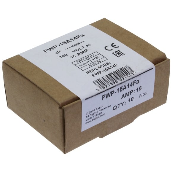 Eaton Industries France SAS - Cartouche fusible, grande vitesse, 15 A, AC 700 V, 14 x 51 mm, aR, UL - FWP-15A14F