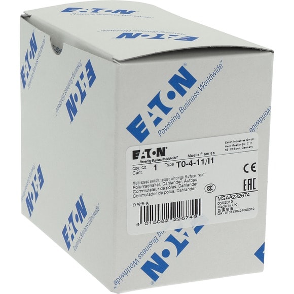 Eaton Industries France SAS - Commut., cont.: 8, 20A, Dahlander, 2 vitesses, 1-2, 90°, à acc., en saillie - 222674