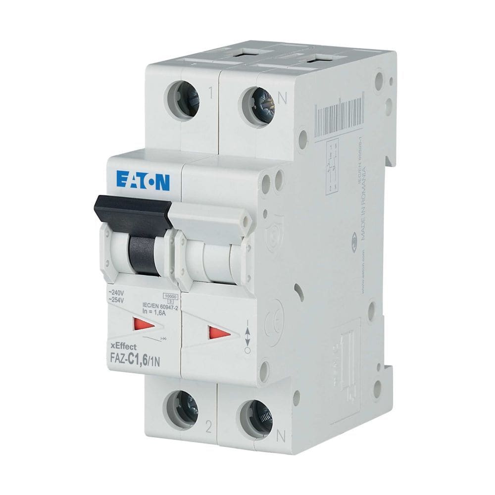 Eaton Industries France SAS - Disjoncteur modulaire FAZ, 1,6A, 1P+N, 15kA (IEC/EN 60947-2), courbe C - 278661