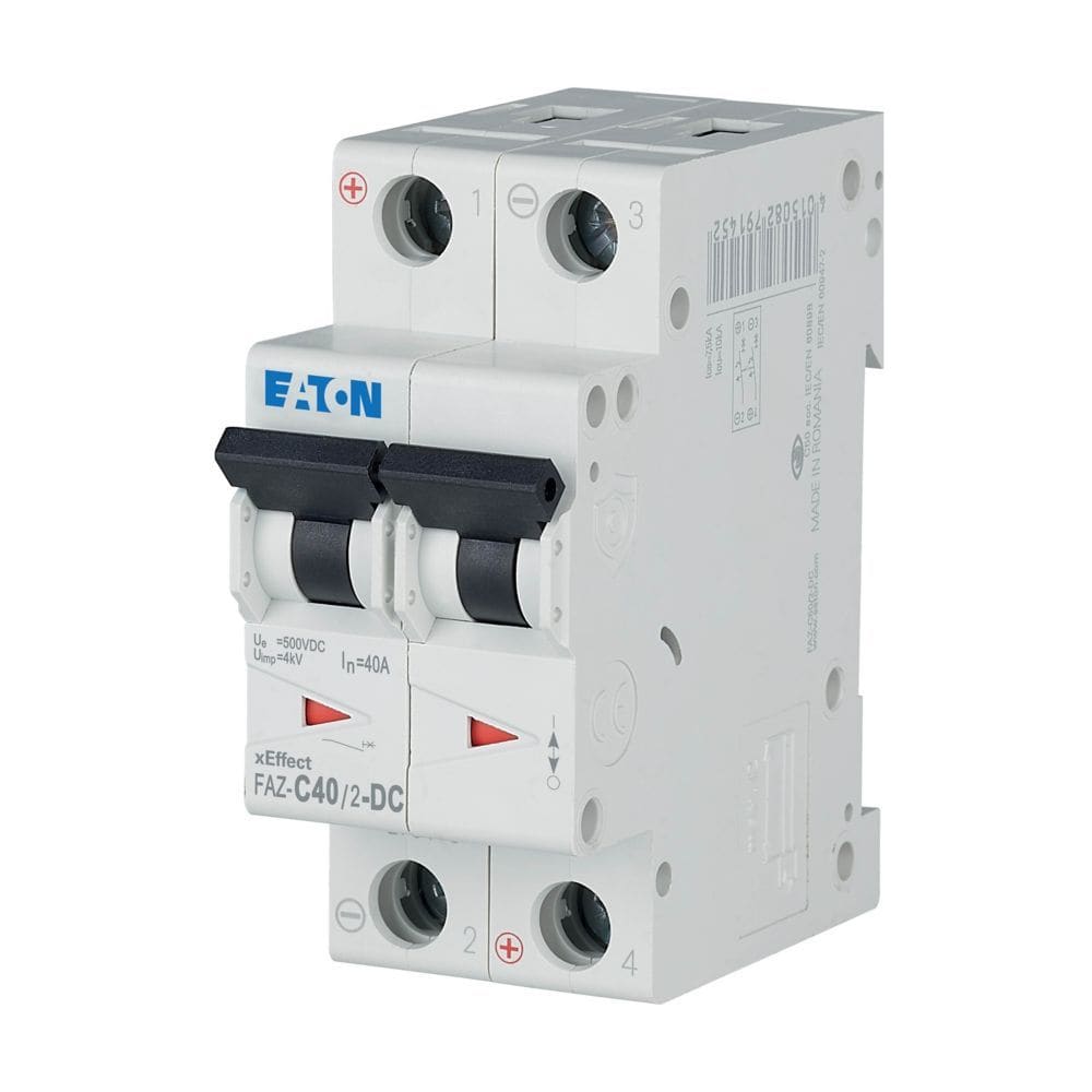 Eaton Industries France SAS - Disjoncteur modulaire FAZ-DC, 40A, 2P, 15kA (IEC/EN 60947-2), courbe C, DC - 279144