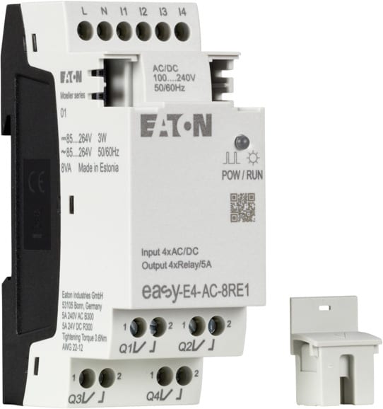 Avec les modules logiques easyE4 de la série Moeller d'Eaton, la mise en œuvre des tâches de commande est désormais rapide et efficace, que ce soit dans les applications industrielles, de bâtiment et de construction spécialisée. Jusqu'à 11 extensions d'E/S ainsi qu'une large gamme de tensions sont disponibles.Les nouveaux appareils easyE4 sont non seulement faciles à utiliser, mais ils offrent également une programmation simple et flexible.Avec quatre langages de programmation différents, le logiciel easySoft est intuitif et facile à utiliser.L'ajout d'autres fonctions, telles que le serveur web intégré et l'interface Ethernet, font de l'easyE4 un module logique performant compatible avec l'architecture des systèmes IIoT.