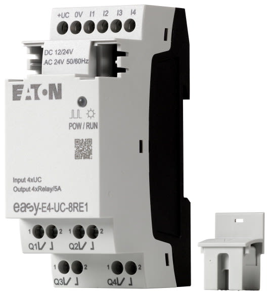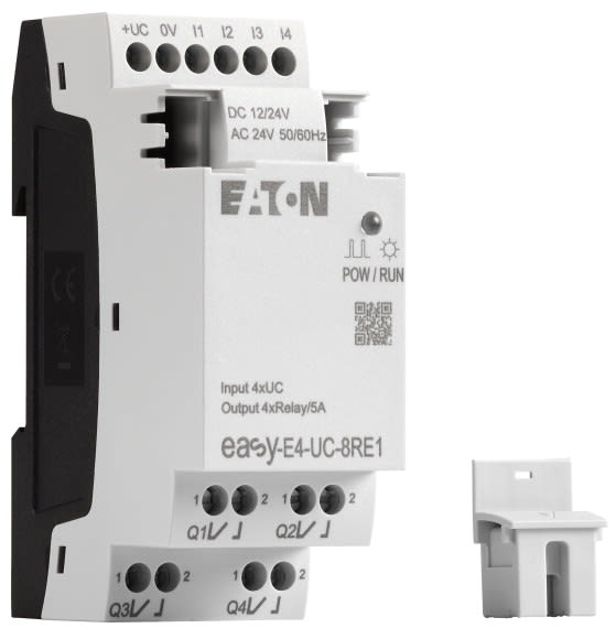 Avec les modules logiques easyE4 de la série Moeller d'Eaton, la mise en œuvre des tâches de commande est désormais rapide et efficace, que ce soit dans les applications industrielles, de bâtiment et de construction spécialisée. Jusqu'à 11 extensions d'E/S ainsi qu'une large gamme de tensions sont disponibles.Les nouveaux appareils easyE4 sont non seulement faciles à utiliser, mais ils offrent également une programmation simple et flexible.Avec quatre langages de programmation différents, le logiciel easySoft est intuitif et facile à utiliser.L'ajout d'autres fonctions, telles que le serveur web intégré et l'interface Ethernet, font de l'easyE4 un module logique performant compatible avec l'architecture des systèmes IIoT.
