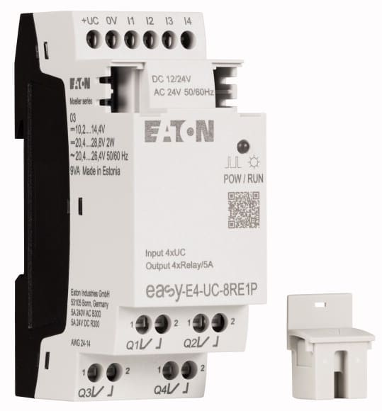 Eaton Industries France SAS - Extension E/S, 12/24 V DC, 24 V AC, 4 entrées TOR, 4 sorties relais, Push-In - 197510