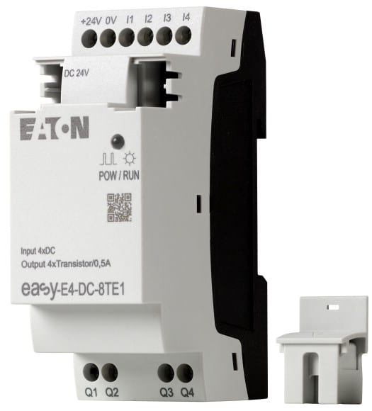Avec les modules logiques easyE4 de la série Moeller d'Eaton, la mise en œuvre des tâches de commande est désormais rapide et efficace, que ce soit dans les applications industrielles, de bâtiment et de construction spécialisée. Jusqu'à 11 extensions d'E/S ainsi qu'une large gamme de tensions sont disponibles.Les nouveaux appareils easyE4 sont non seulement faciles à utiliser, mais ils offrent également une programmation simple et flexible.Avec quatre langages de programmation différents, le logiciel easySoft est intuitif et facile à utiliser.L'ajout d'autres fonctions, telles que le serveur web intégré et l'interface Ethernet, font de l'easyE4 un module logique performant compatible avec l'architecture des systèmes IIoT.