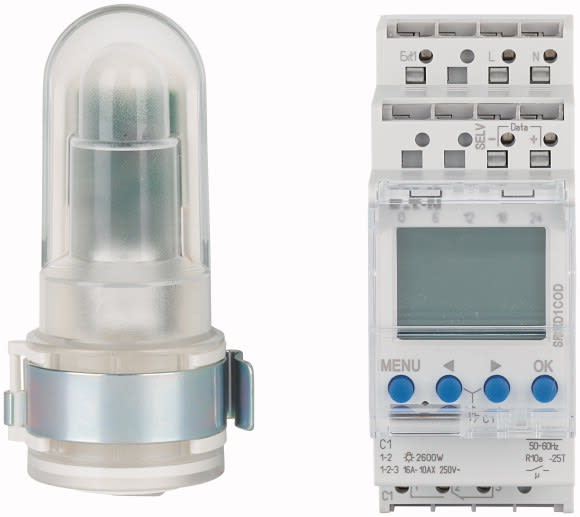 Eaton Industries France SAS - Inter crépusculaire, 1- 99000 Lux, progr. Hebdo. digital avec capteur - 196847