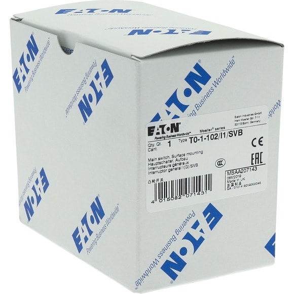 Eaton Industries France SAS - Inter. général, 2 P, 20 A, 90°, verrouillable en position 0, en saillie - 207143