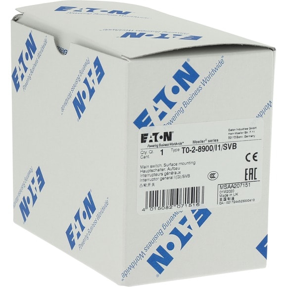 Eaton Industries France SAS - Inter. général, 3 P+N, 20 A, 90°, verrouillable en position 0, en saillie - 207151