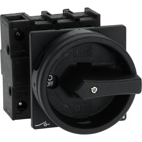 Interrupteur général, 3p+N, 32A, poignée noire, verrouillable, montage encastré