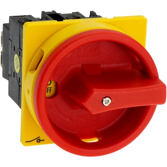 Interrupteur général, tripolaire + 1 Contact F, 20 A, Fonctions d'ARRÊT D'URGENCE, 90 °, verrouillable en position 0, Montage encastré