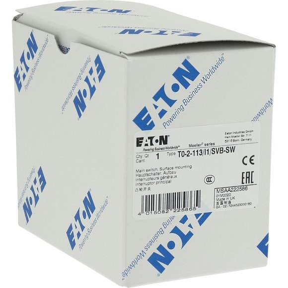 Eaton Industries France SAS - Inter général, tripolaire + 1O, 20 A, Fonction d'arrêt, 90 °, en saillie - 222586