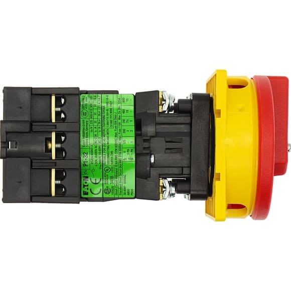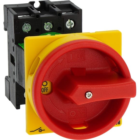 Interrupteur général, 3p, 32A, poignée rouge-jaune, verrouillable, montage encastré avec fixation par l'arrière