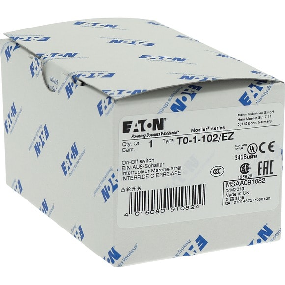 Eaton Industries France SAS - Inter. Marche-Arrêt, 2 pôles, 20 A, 90 °,encastré, fixation centrale - 091082