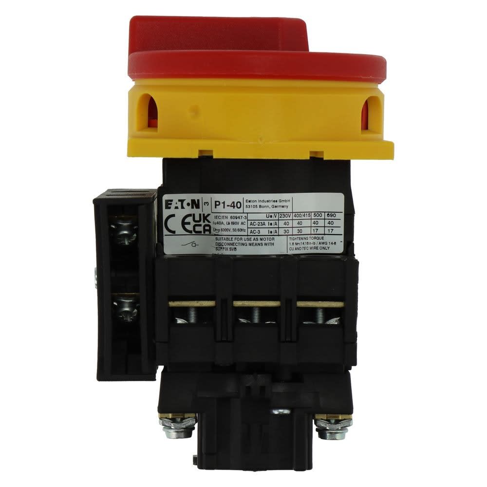 Eaton Industries France SAS - Interrupteur général, P1, 40 A, encastré, tripolaire, 1F, 1O, arrêt d'urgence - 199895