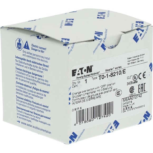 Eaton Industries France SAS - Inverseurs, Contacts: 2, 20 A, plastron: 1-0-2, 60°, à accrochage, encastré - 012742