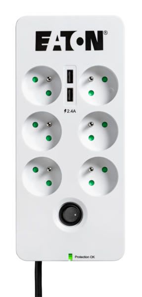 Eaton Industries France SAS - Multiprise parafoudre certifiée,10A, 6 prises FR, 2 prises chargeur USB + R11 - PB6TUF