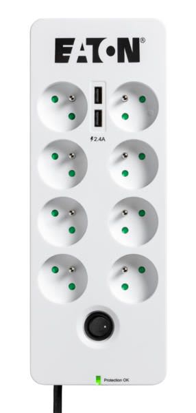 Eaton Industries France SAS - Multiprise parafoudre certifiée,10A, 8 prises FR, 2 prises chargeur USB + R11 - PB8TUF