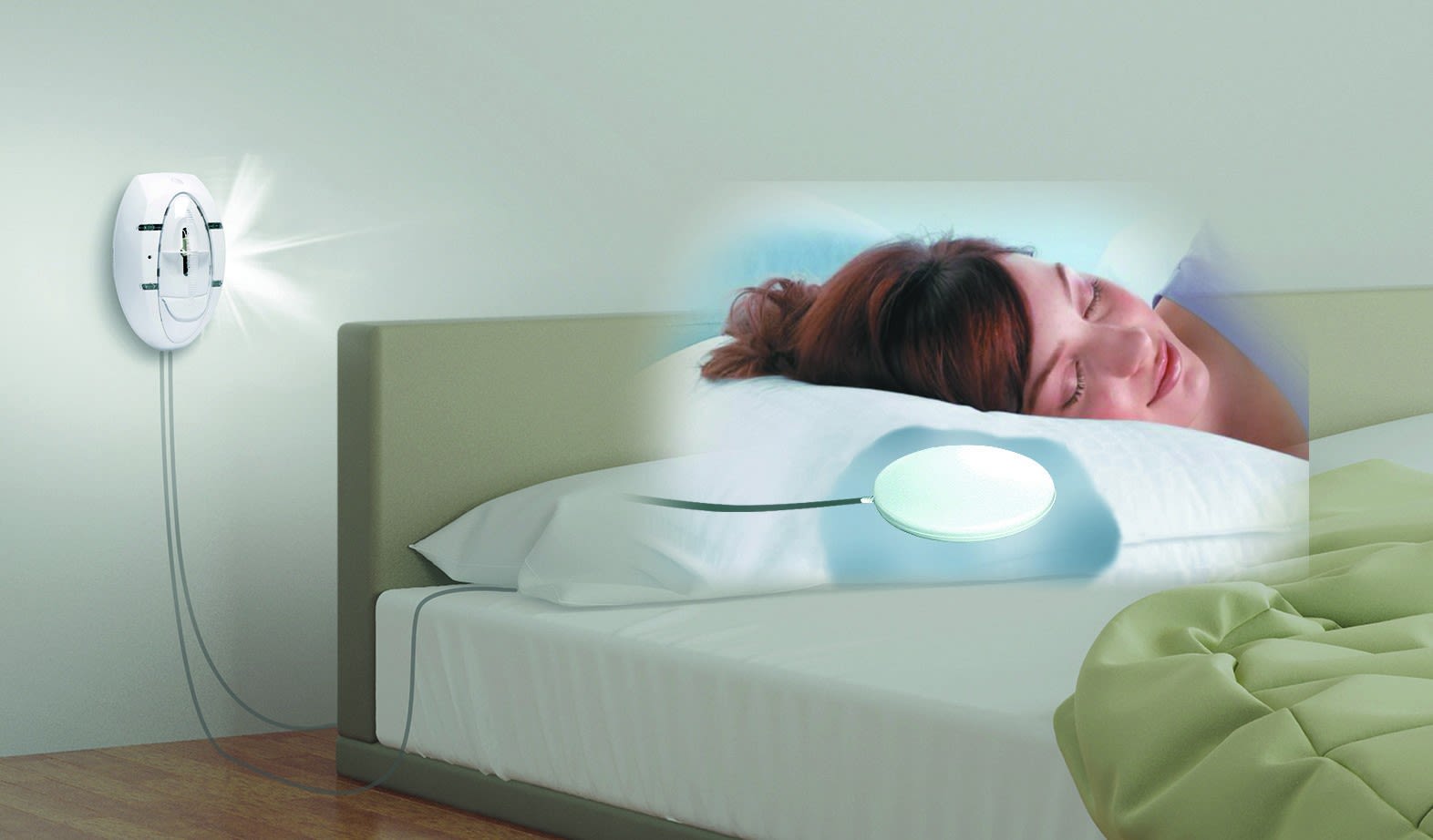 Kit Flash Stroboscopique et Coussin Vibreur (pour DAAF ou DAACO équipé de module RF) pour réveiller une personne sourde ou malentendante Alimentation Prise secteur avec batterie de secours Coussin vibreur à placer sur le matelas sous l'oreiller