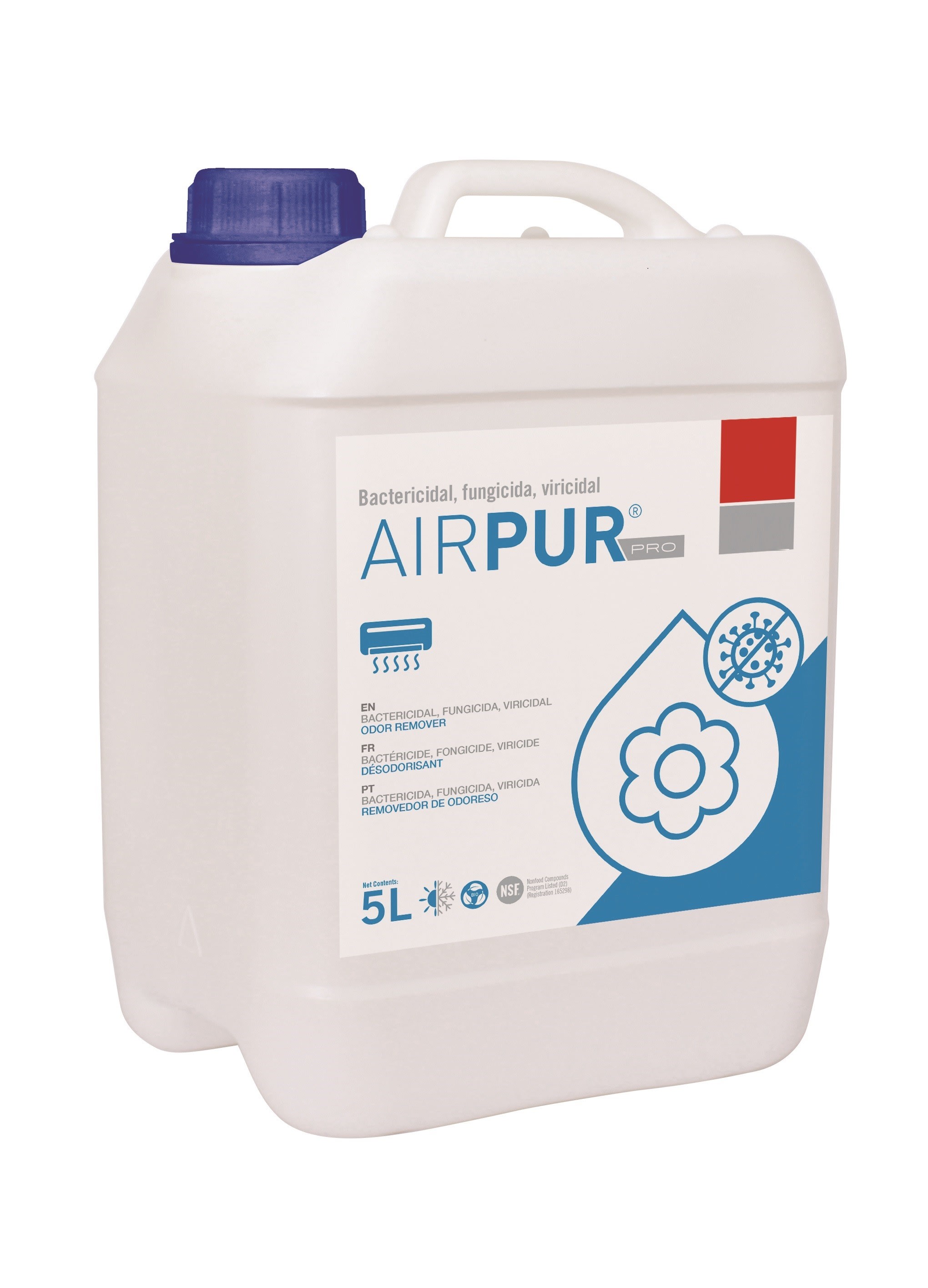 Bidon recharge AirPur 5L. Conforme à la norme UNE-EN 13697 et EN 14476. Biodégradable.